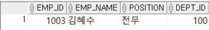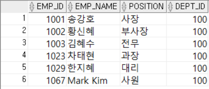 - "WHERE dept_id = 100" 처럼 숫자는 단일 인용부호('')를 사용하지 않고 검색