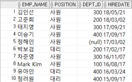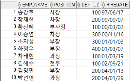 SELECT emp_name, position, dept_id, hiredate
