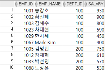 ORDER BY dept_id, salary DESC;