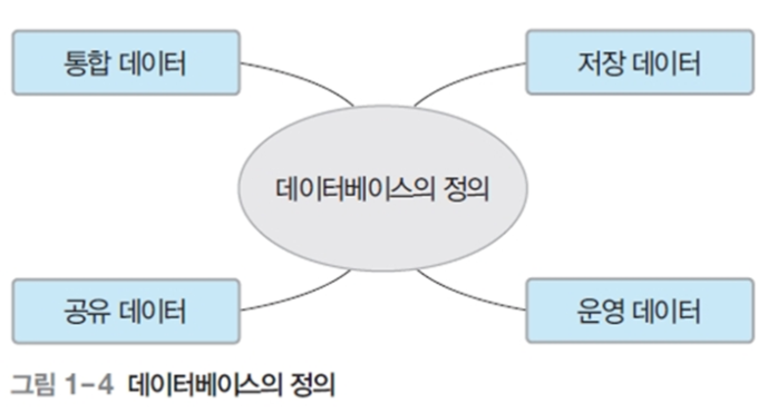 - 특정 조직의 여러 사용자가 공유하여 사용할 수 있도록 통합해서 저장한 운영 데이터의 집합