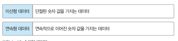 - 크기 비교와 산술적인 연산 가능한 숫자 값을 가진 데이터