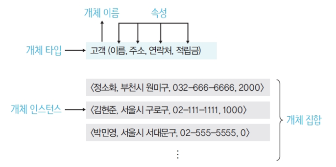 - 개체를 고유한 이름과 속성들로 정의