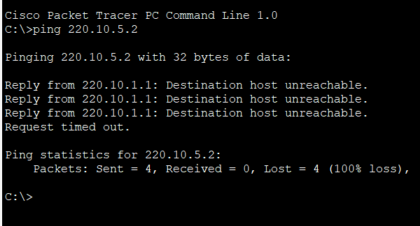 - 소속되지 않는 네트워크를 라우팅테이블에 추가하려면 위와 같은 구문을 사용하여 추가해주어야합니다.Router(config)#ip route 220.10.3.0 255.255.255.0 220.10.2.2 Router(config)#ip route 220.10.4.0 255.255.255.0 220.10.2.2 Router(config)#ip route 220.10.5.0 255.255.255.0 220.10.2.2 Router(config)#exitR2